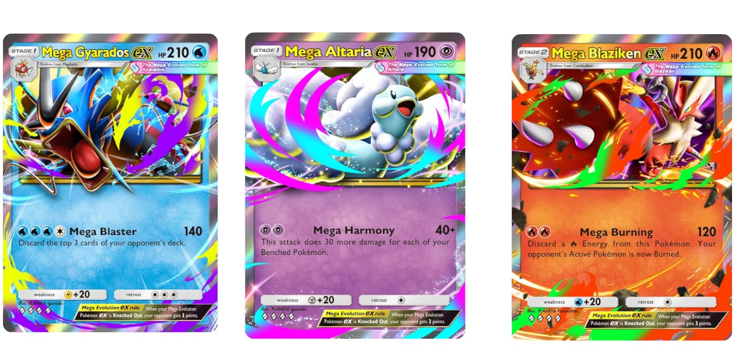 What makes the Mega Evolutions special is that they do a ridiculous amount of damage, while also having a huge amount of HP. For example, Mega Altaria EX has 190HP and a two cost attack that can do 40-130 damage (depending on what’s on your bench). It’s basically basic Sylveon, but with an extra 100HP. Mega Gyrados EX is similar to regular Gyrados EX in that it does 140 damage for 4 energy, but it also discards the top three cards of your opponent’s deck and has 210HP. This is going to really shake up the meta and might finally relegate Darktina (the most popular deck in ranked) to merely being A tier.